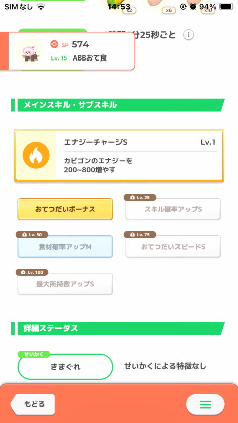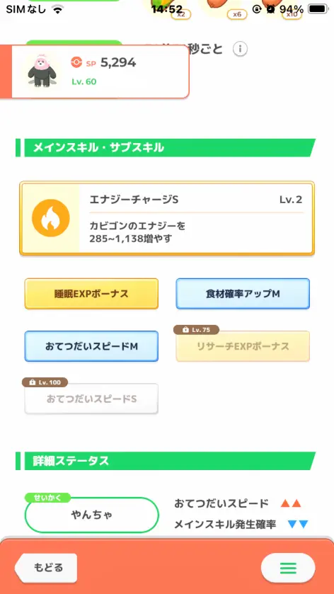弱いと誤解を生んでしまわないように補足として、爆発力を失ったとは言いつつもでんき5種編成でもスキ確Mのみの個体にほんの少し負けるかな?ぐらいのきのみとスキルの合計エナジーを稼ぎつつそこに加えておてボで他のポケモンを加速させるので別に普通に強いです