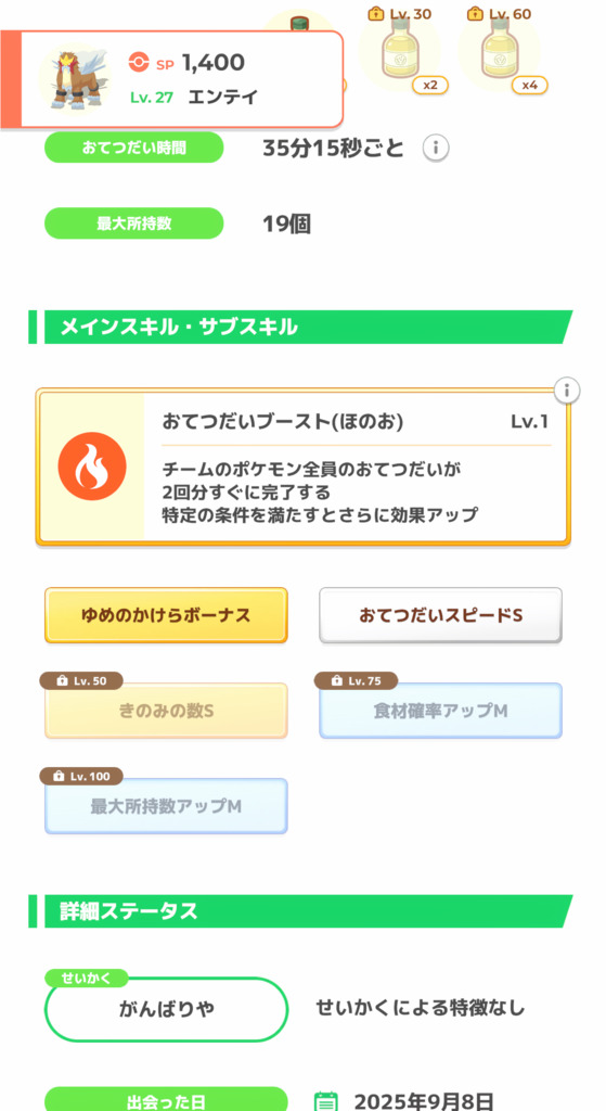 ②寝顔を重視する イベントボーナスの活用や備蓄、笛などで最高記録を超える必要がありますが、ワカクサで280万エナジーほど到達出来れば☆3寝顔も狙えます 代わりにポケモンのおとしもの入手数は減るため、シアンよりおこうやサブレの入手数が減るかも 2週目の方がエナジーを稼ぎやすいので1週目シアンでリソース集め、2週目ワカクサで寝顔チャレンジと併用もアリです