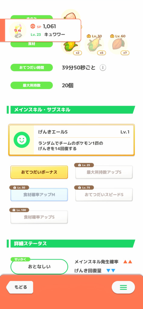 追記: おこうはチルットだったのであまり関係なかった… そしてホイッスル、バッグが一杯で食材回収しきれないと2本目を吹くことができないの、初めて知りました