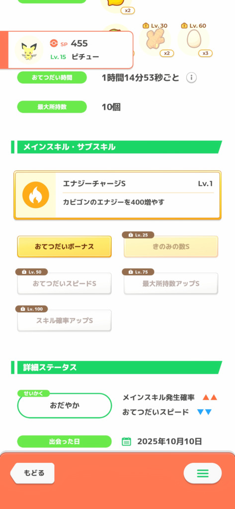 S100.10.10に来てくれたメモリアルピチュー ゴル旧の開拓これからだし、フルスペックで働いてほしいからミント使っちゃおうかな