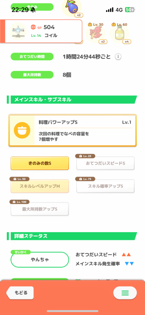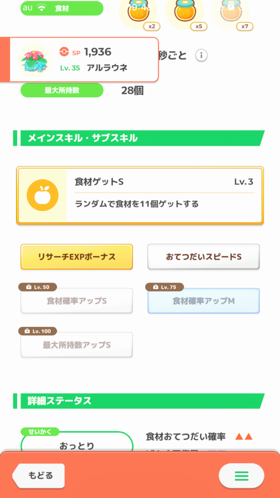 性格食↑にスピSだけでも十分すぎるほど蜜を持ってきてくれるのでレベル50の食S解放したらどうなるんだと楽しみに育ててました