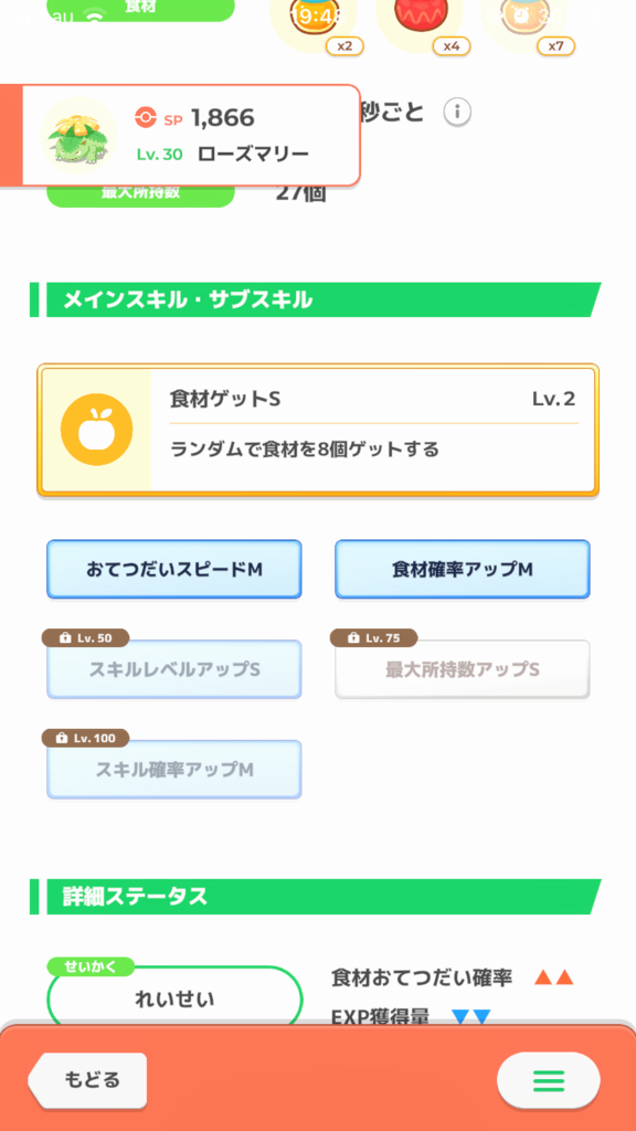 ・料理パワーアップ担当の食材とくいはスキル確率ボーナスの恩恵が大きい