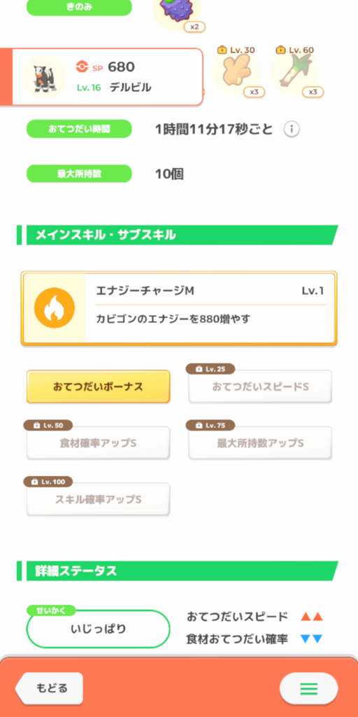 厳選終わってないというより スキ確スキレベボーナスに料理x1.1もあるから デデンネとウインディで料理軸の方が稼げると試算してる きのみタイプは食材が噛み合うなら検討