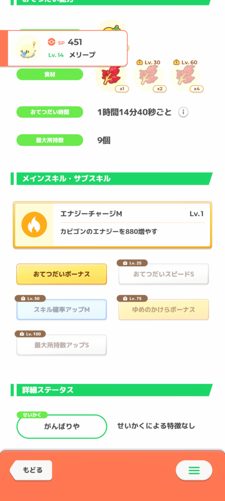 エナチャはスキルレベル上限解放の前例があるから、スキ確振り個体でもきのみ得意と大幅に離されることはないと思ってる(逐次金種投入するのは前提として)