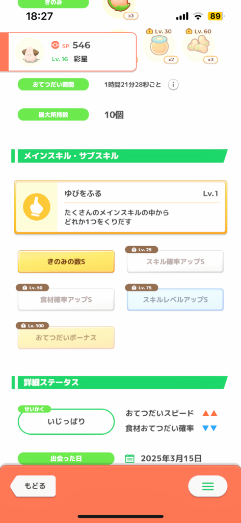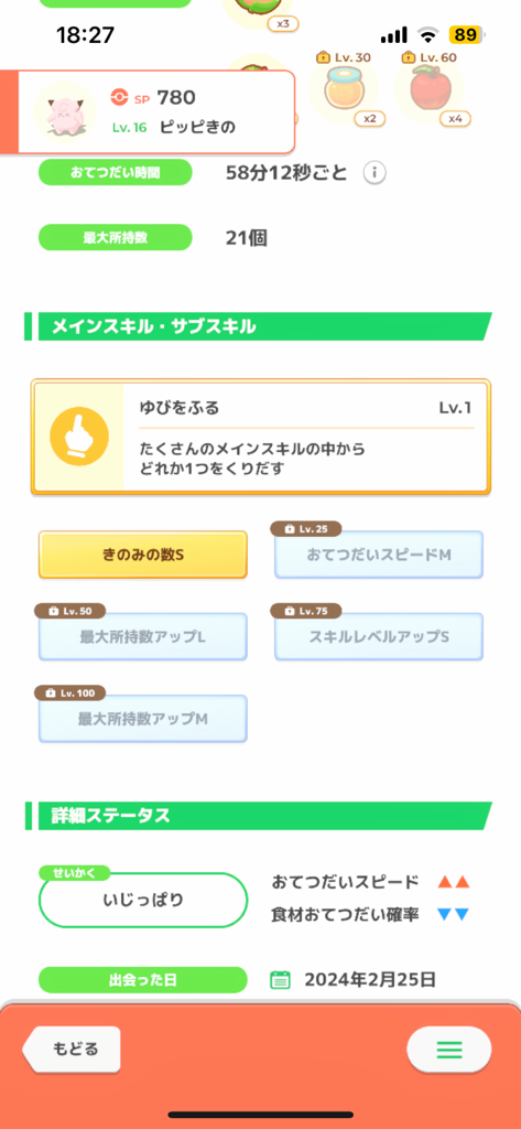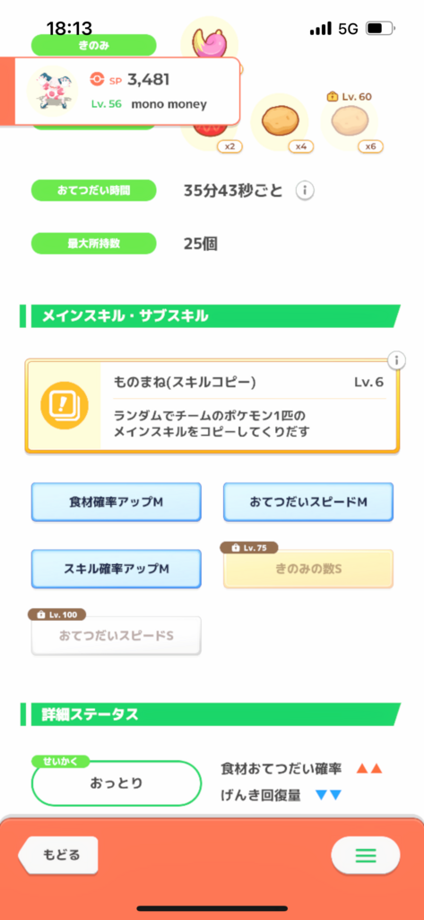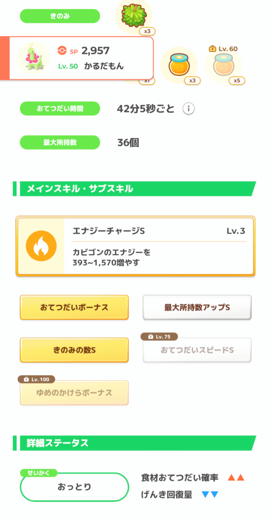 きのみ得意はLV50までのサブスキルを見てきのみの数Sがあり、おてスピ補正がある事が重要で