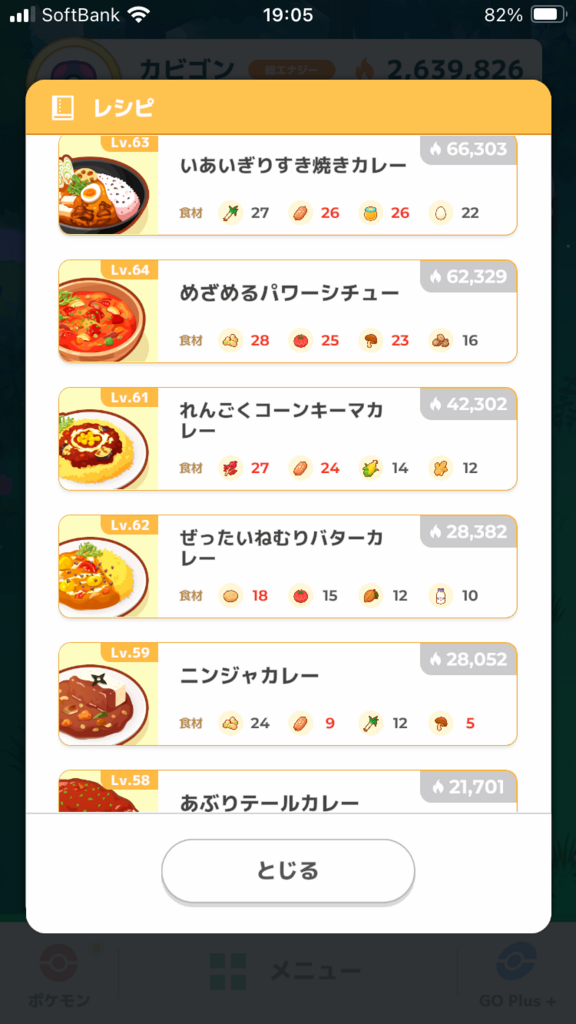 カレーだけレシピレベル65が1つもなくてごめん寝