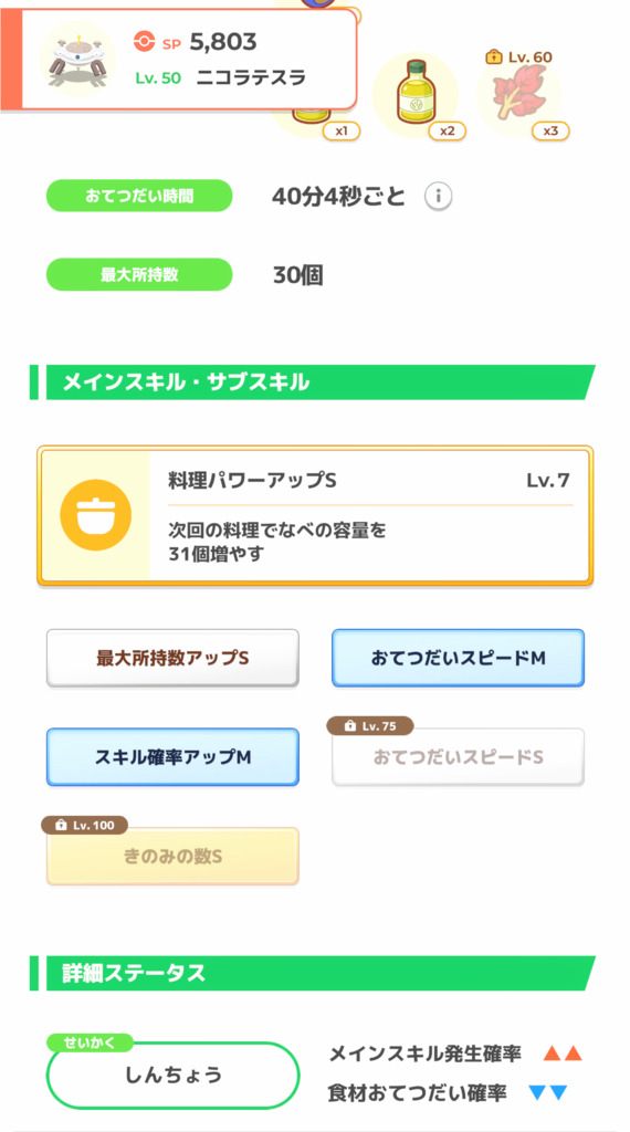鍋拡張のスキルは強いですが、強いスキルタイプの鍋拡張の子がいれば、十分すぎるほど鍋拡張してくれます。なので、食材タイプは食材を集めましょう。