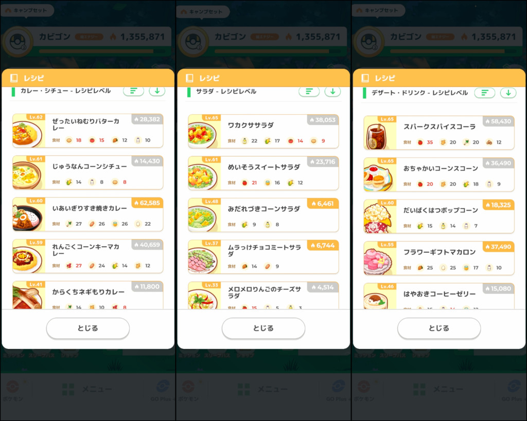 同じくカレーがあからさまに育ってない あらためて見ると私の場合はデザートに偏ってるかも?(サラダはワカクサ連打気味) レシピレベル順