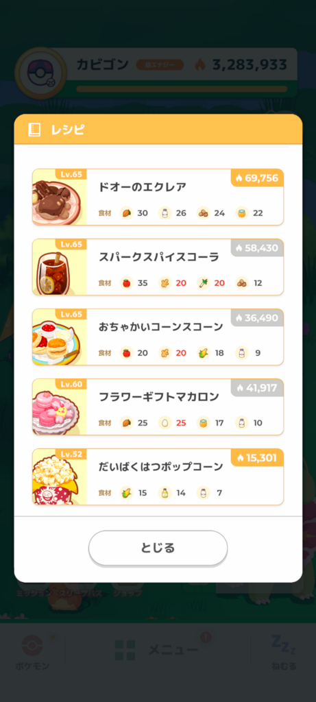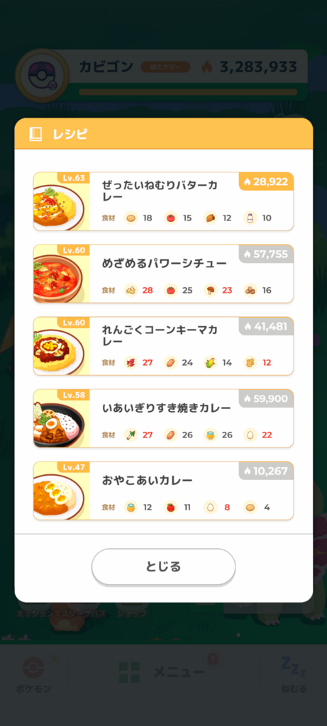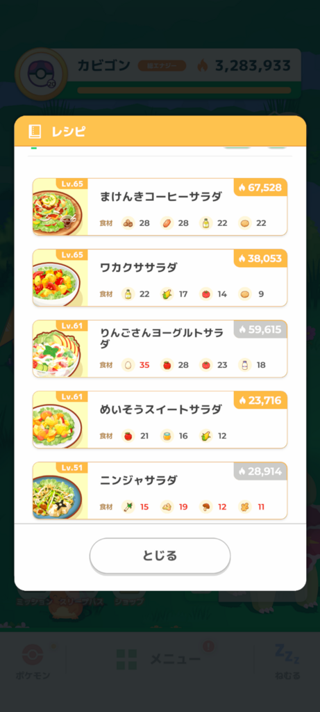 皆同じだ寝… やっぱり普段遣い用の60代レシピがないのと超大型レシピは必ず高エナジー食材を大量に要求するのが痛いね 自分が詰んだ理由はなぜか豆とタマゴなんですけどね