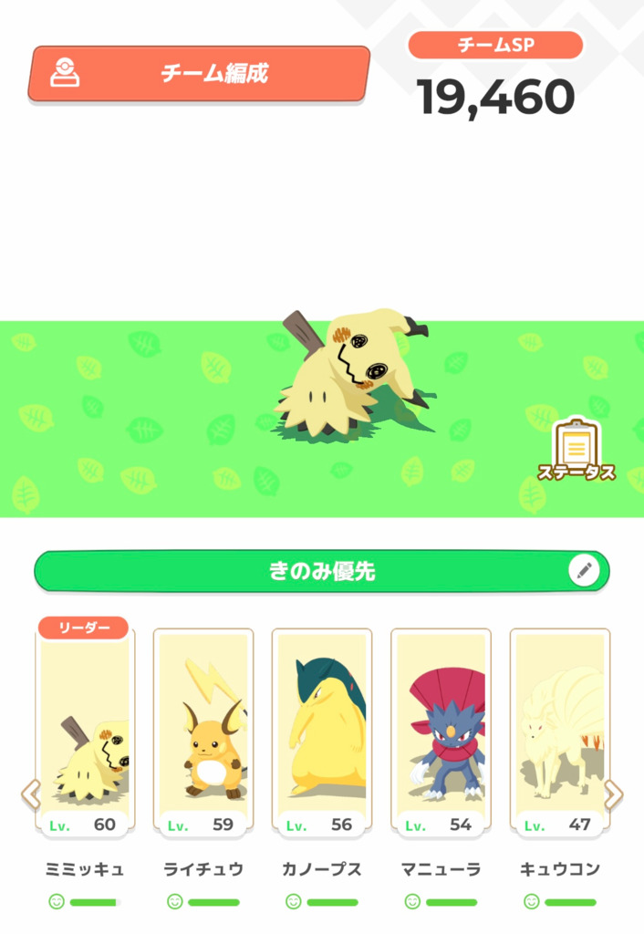 敢えてのきのみ得意(60食材も狙い目)を置いたのは、英断だったか