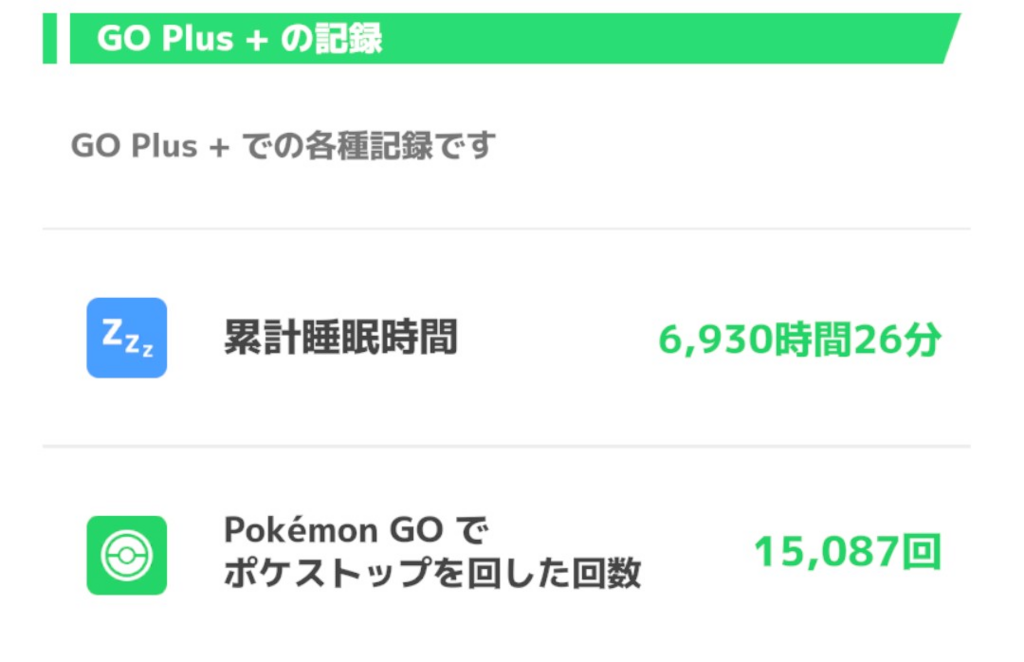おめでとうございます!そして情報ありがとう! 木主はゴプラで計測始めて670日くらいで他の情報はこんな感じ ちょっとお聞きしたいんですけど、ポケモン系のアプリってポケモンGO以外してますか?