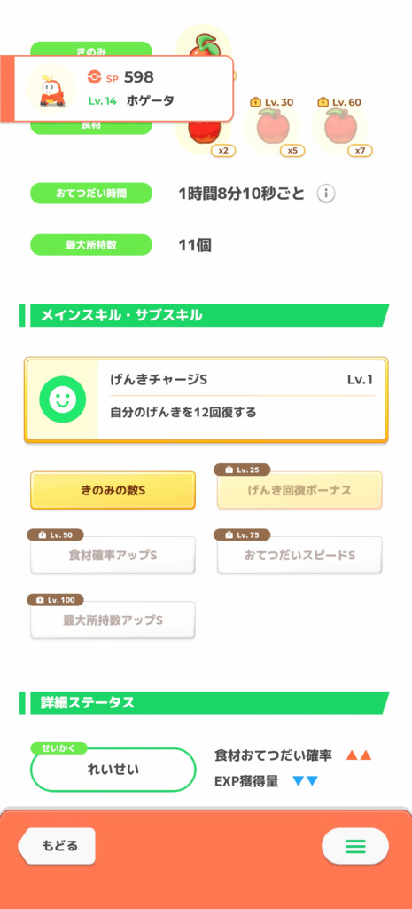 料理を絡めてエナジーを稼ぐ場合、編成するきのみとくいに合わせて幅広く対応出来るようにしておくとやはり強いと思います