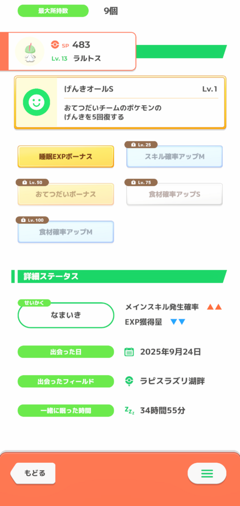 きのみS無補正😊 きのみSプラスα(expアップや睡ボなど)👍 きのみS+おてスピ🎉 おてきの❤