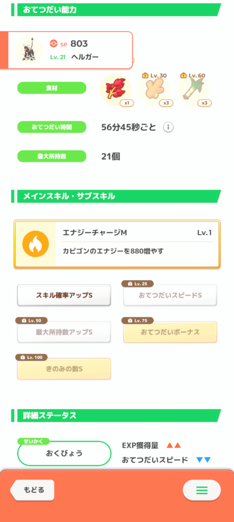 当然ですがげんきの維持がしやすいです ライコウは常駐運用が多くあまり交代をしないのでげんきを維持しやすい恩恵は少ない側ですが、ヒーラーの下振れに強く、夜間のおてつだい回数が増えることでレベル差によるエナジー差も多少埋められます ただ、ヒーラーが強ければ大したメリットでもないのも確かです