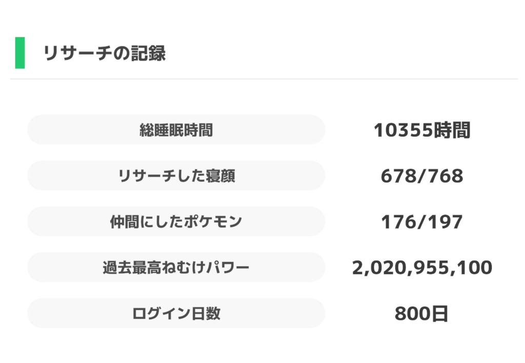お、800日だ❗️ ほとんどワカクサかゴールドでしか寝ない変態プレイでも寝顔図鑑ここまで埋めれるもんなんだ