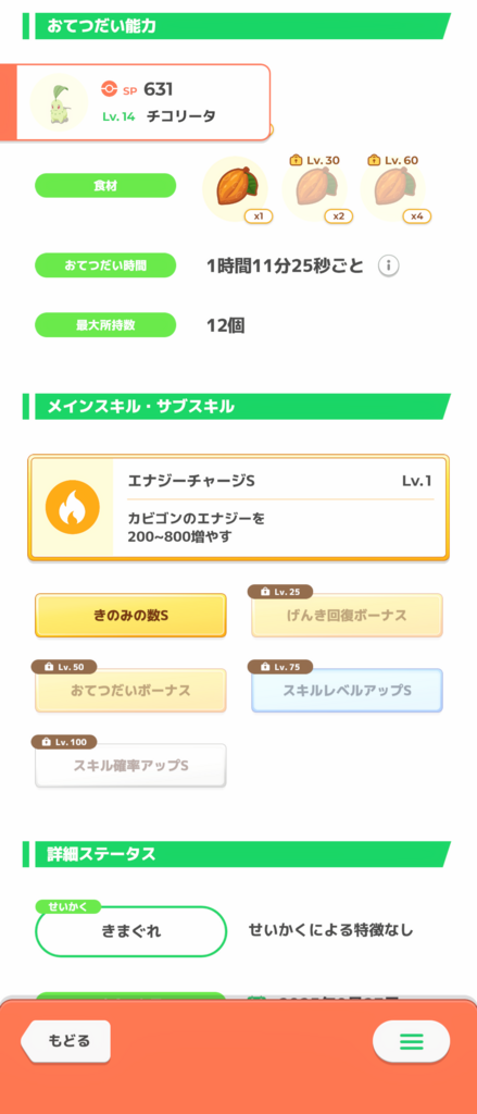 おてスピ↓だけが気になるけどEXP↑が偉いので、Lv.75でミントを使うことも視野に入れようかな