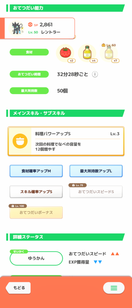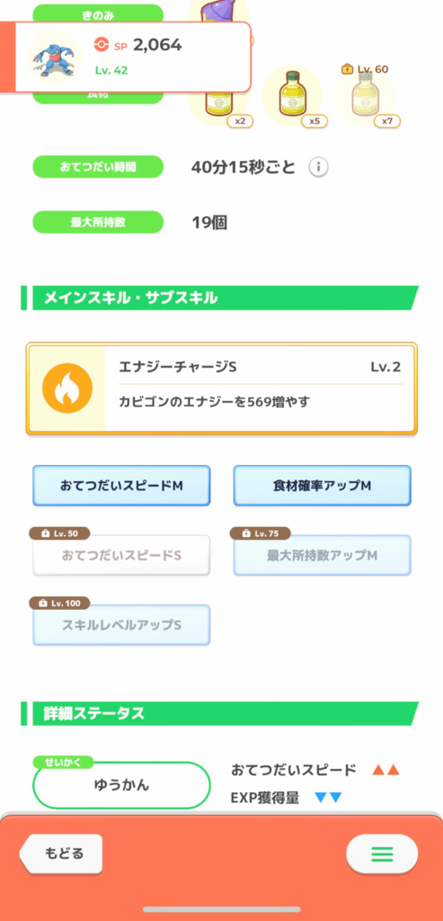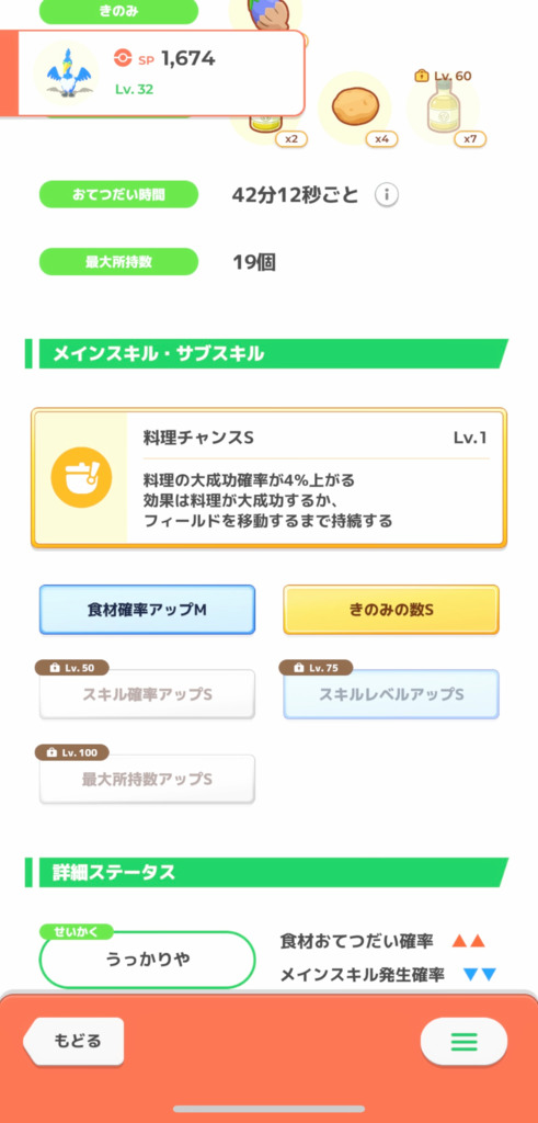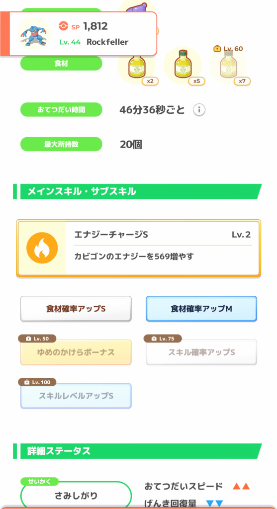 👍おてボきのみSスキレベMさみしがりチルタリス(Lv32) 😊きのみSおてスピMげんボがんばりや色アーボック(Lv35) 🎉食Sスキ確SきのみSいじっぱりバタフリー(Lv15) 🤝スキ確M睡ボ所Lせっかちライコウ(Lv28)