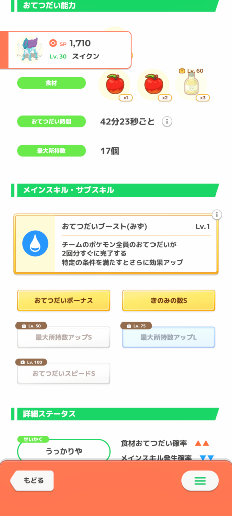 きのみの数S 所持数M 食材S おてスピM スキ確S