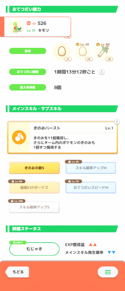 ちなみにまだ余りきのみ得意等エナジー役の優秀なキャラを持っていません。メインで使っている子は