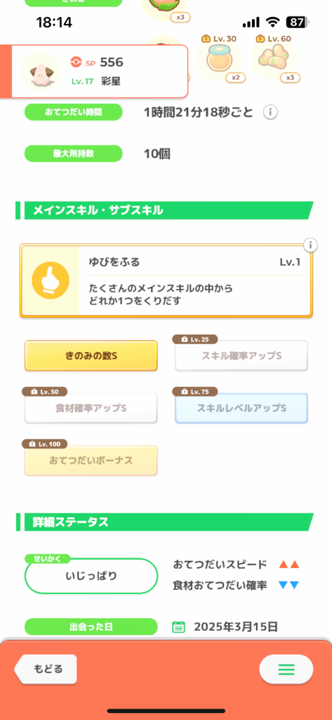 これでデザート・ドリンクって結構厳しい このタイプのきのみ得意なんか育成は勿論、厳選も終わってない 自慢のブラッキーを筆頭にゲンガーにエナジーを稼いで貰おうと思うんだけど、真面な料理が出来そうにない なんとかソイドーナッツでも作って貰おうと思ったけど、やっぱり油・ココア担当のデバフ付きの子達が持たない ダブルヒーラー&悪タイプ2匹&ゲンガーとかだと、元気凸凹でもやもやする せめてゲンガーが60超えで油を集めたりブラッキー君がココアを持って来てくれたり AAAアブソルやカイロスが居れば何とかなりそうなんだが…次の飴ブでダークライでも育てるかな
