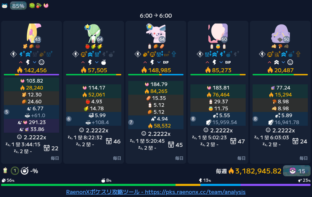 擬似的にマルチタイプ状態にもなってるしきのバも6匹分で計算できる