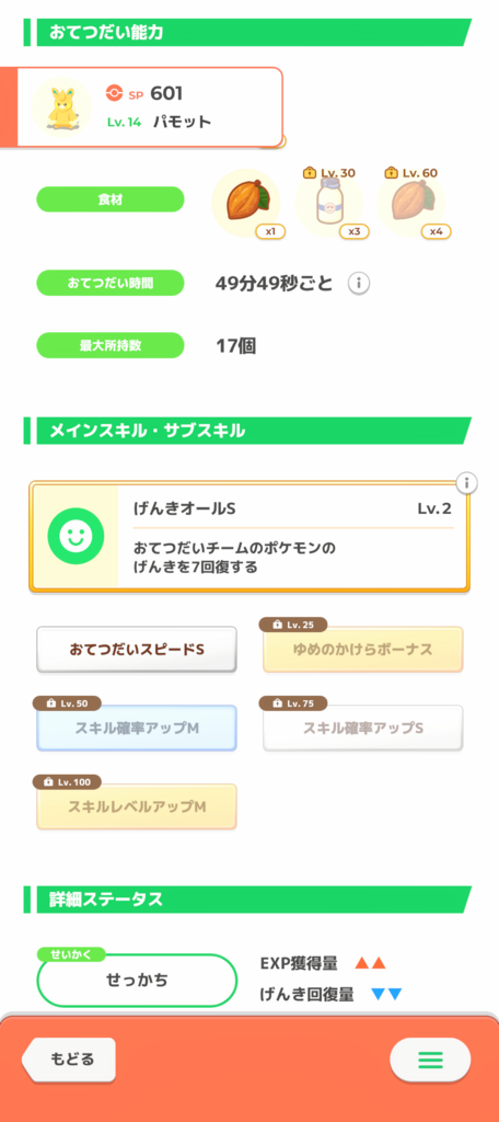 トゲデマルのほっすり100%麻痺のポケスリ的解釈を踏襲してスキル発動補助、HP半分以下を再現すんのはげんきしか浮かばんかった