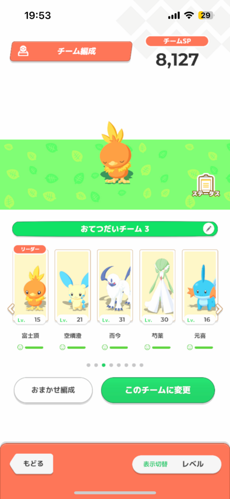 アブソルがバトル用のパーティに誰かと入れ替わることが度々。