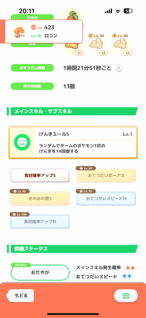 総合的にきのみエナジーだけ見たらたぶんおだやかのほうが稼ぐんだろうけど、やんちゃの食材が強いからこっち選びたくなる