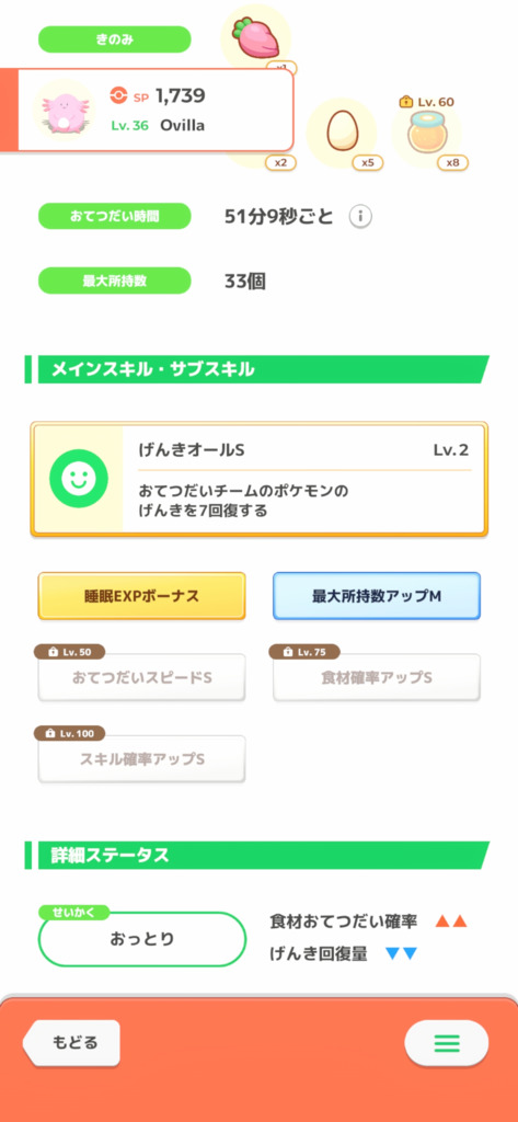 スキレベの有無、スキ確の有無、所持数でもL+αあるか、不眠運用、オーキド博士、睡眠EXP等々、凄く参考になりました!
