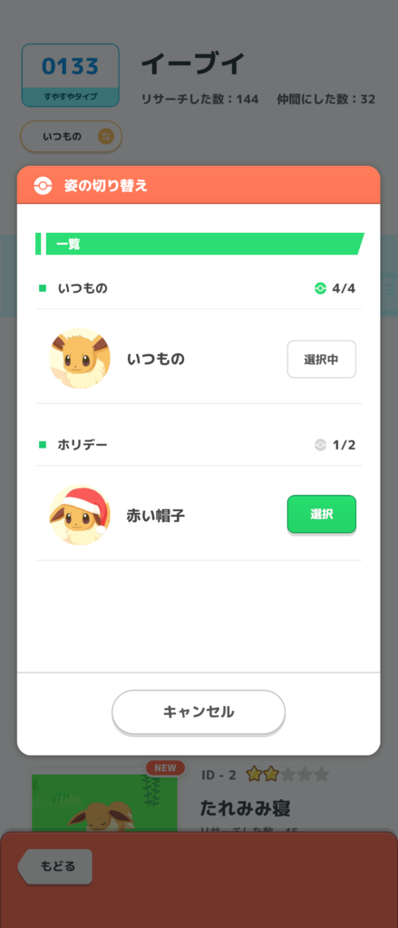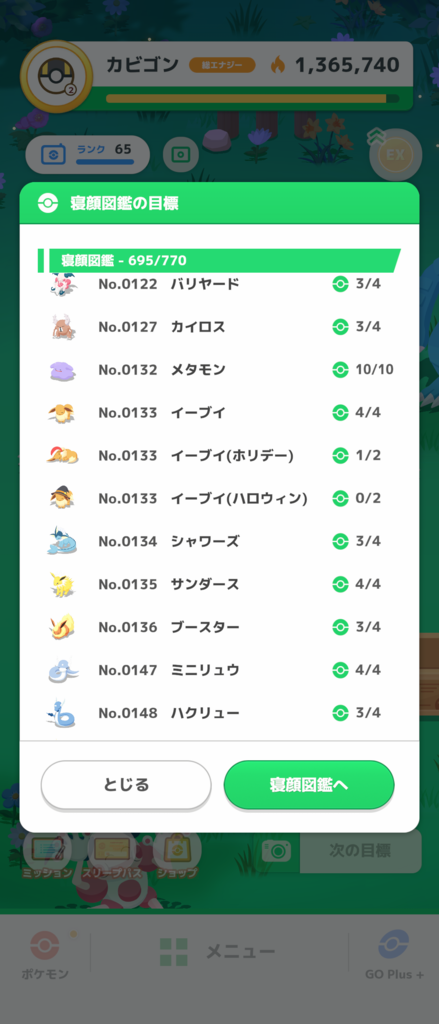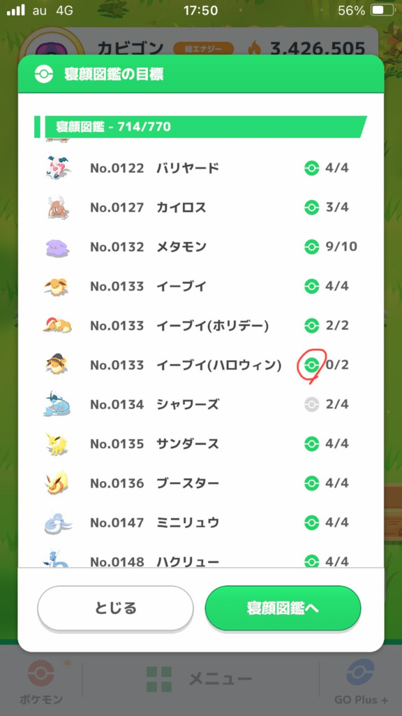 あら、自分も同じ表示になったね 多分イーブイは全部一種類でカウントされるのかな
