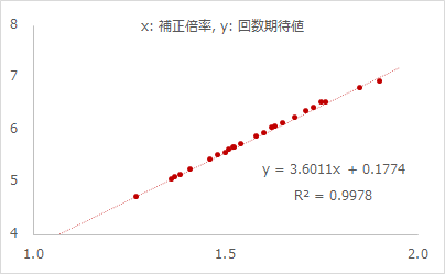 [回数期待値] = [補正倍率] × 3.6 ⁺ 0.18