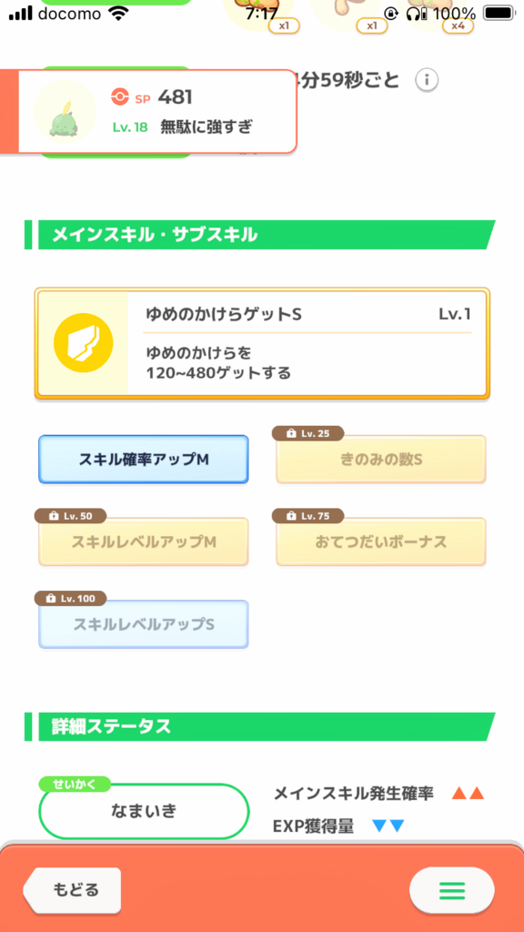 よい子ですねー!! Lv50まで育てば、日中もタップできるなら5回/日、Lv25時点でも4回/日くらい発動してくれると思います スキルレベルアップがあるので、金種を節約できるのもうれしいですね 金×3、銀×2、Lv50まで育成するアメor睡眠を投下する余裕があるかどうか、 あとは何気にげんき↓をケアできるか、というところでしょうか
