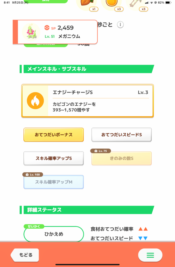 性格こそ残念なものの、食材の並び、サブスキルは気に入っています。ミントの供給量がわかってきたらまっしろミントを使い、銀種をあげてもいいかなーと思っていたところです。