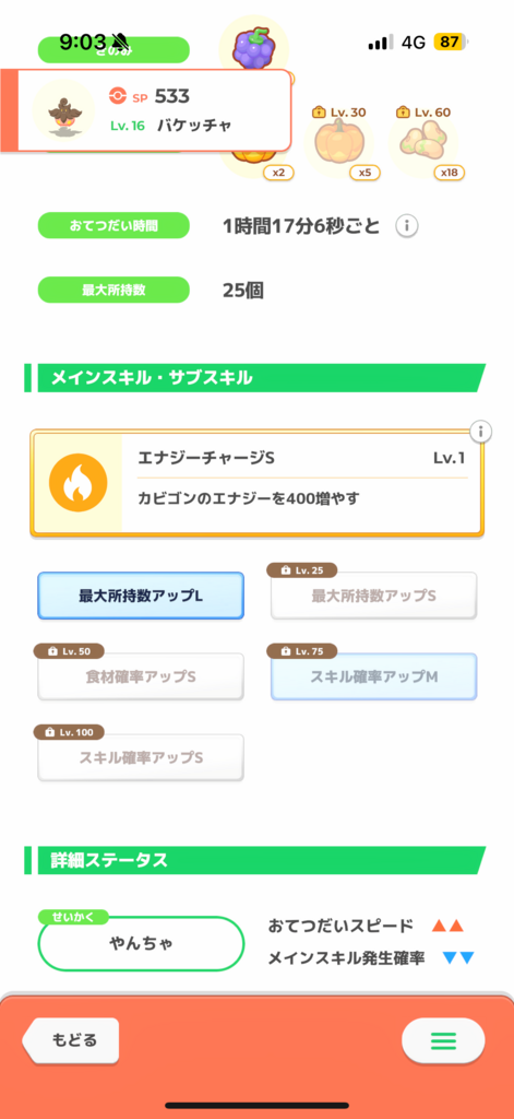 AAAの子ですね! アンバーでバケッチャが出てこないとなるとあめは貴重です。 1枚目のバケッチャを50まで育てるのはもったいなく感じます、、 新食材アボカドも来るし、Bでかぼちゃを持ってくる子もいるかもなので、アンバーの情報待ちですかね、