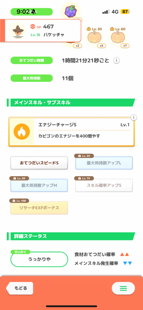 1枚目のバケッチャを50まで育てるのはもったいなく感じます、、
