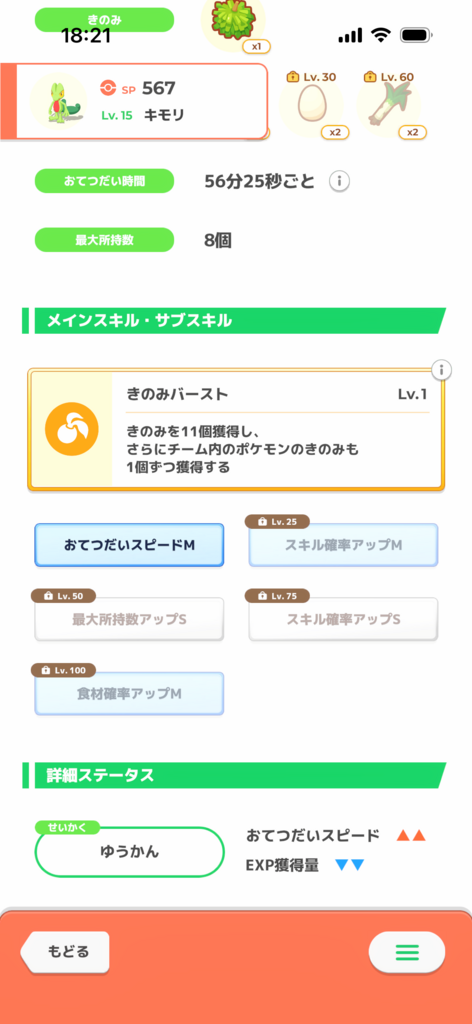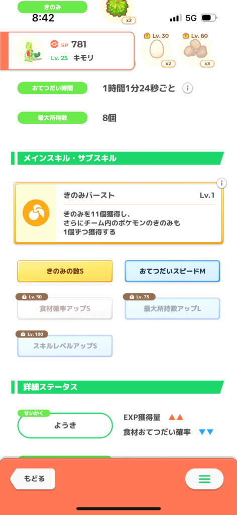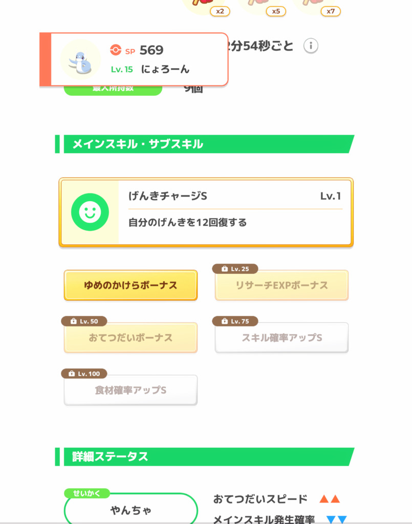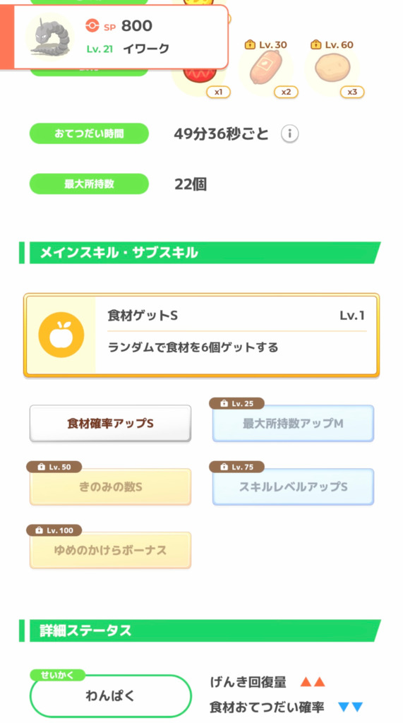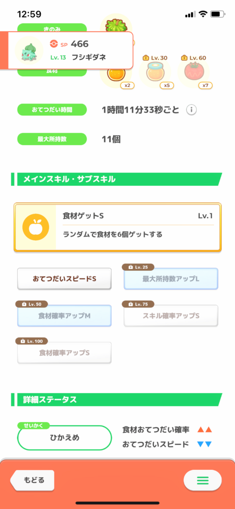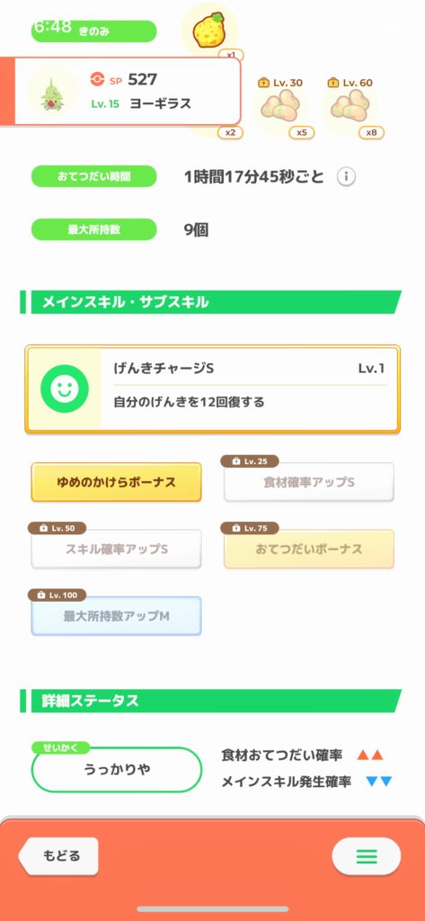 きのみSはエナジー面では強いですが、スキル得意にとっては早々に所持数が埋まりスキルが出せなくなるリスクがあります。