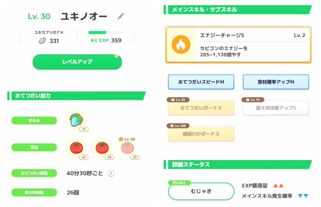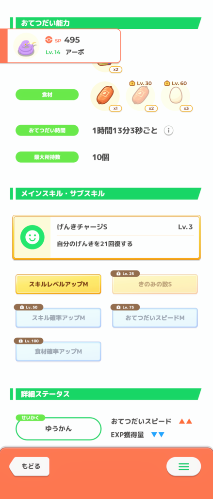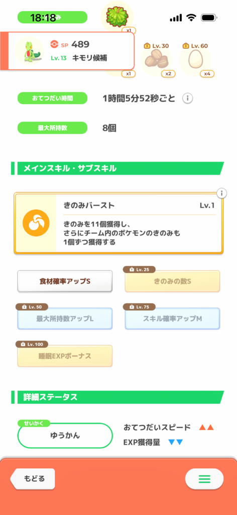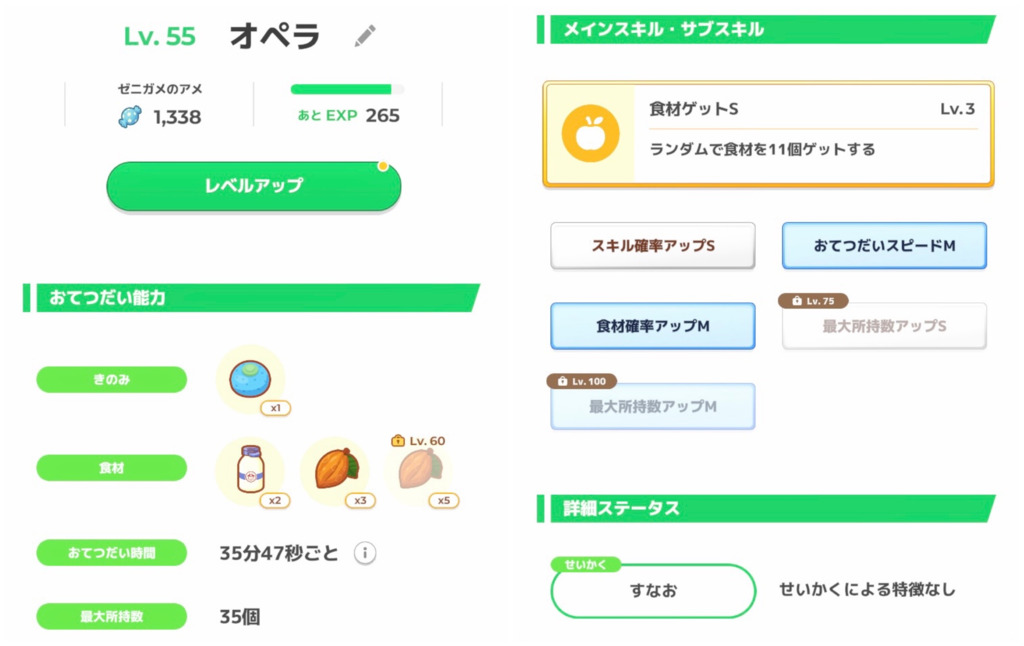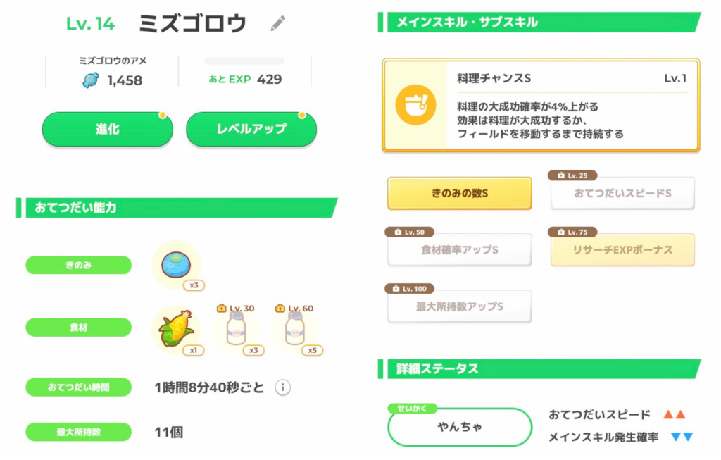 きのみSはエナジー面では強いですが、スキル得意にとっては早々に所持数が埋まりスキルが出せなくなるリスクがあります。