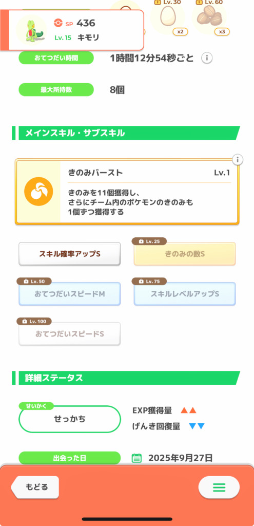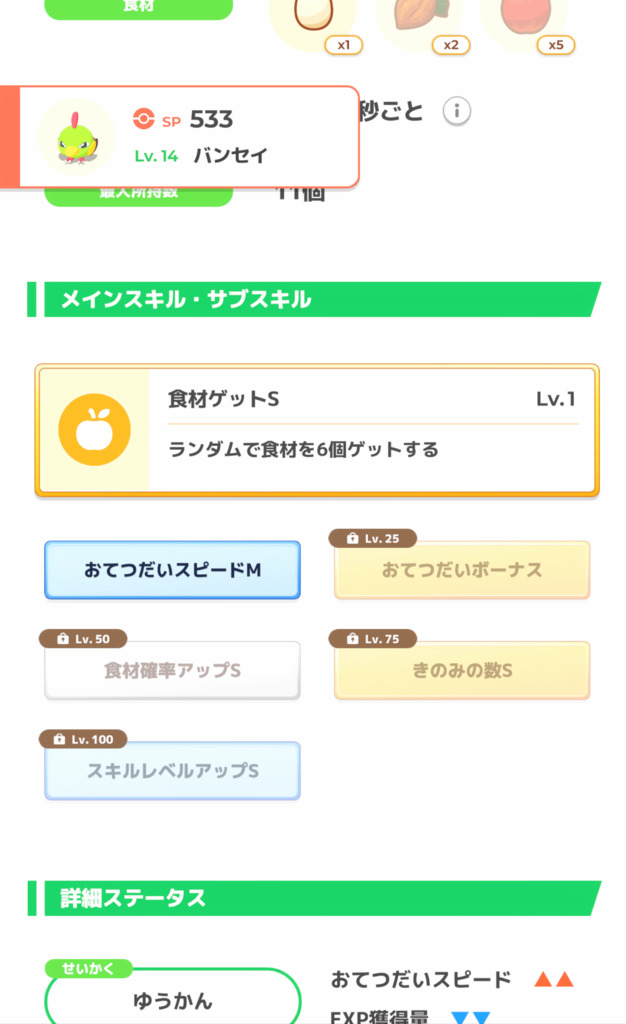 上記の個体は、きのみSにスキルS(銀種があるならMにできればなお良し)