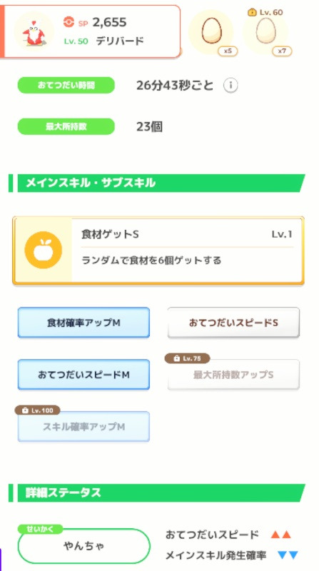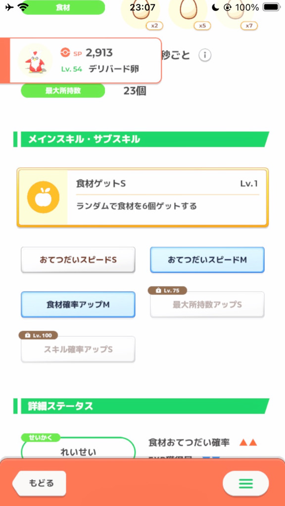 EXP↓の性格ですが、万能アメを砕いて、グッドスリープデイに寝かせて、と少しずつ育てています。あんまり卵が必要な場面がないので悲しいですが...