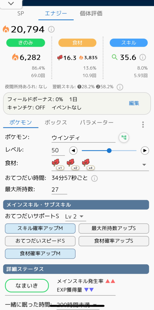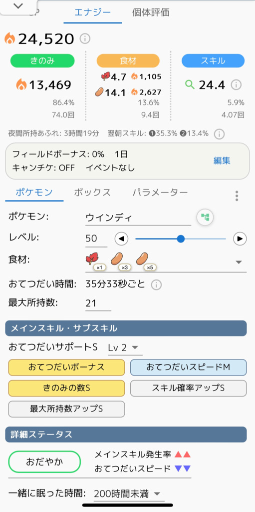 おてブ貯めは、効果的なポケモンのおてつだい貯蓄を最大化することが目的なので、「可能なかぎり主力の貯蓄の回数を高めつつ、おてブのタイプボーナスにも貢献する」ことができるウインディやサンダースは、おてブ役と併用して活躍が可能だと思います。