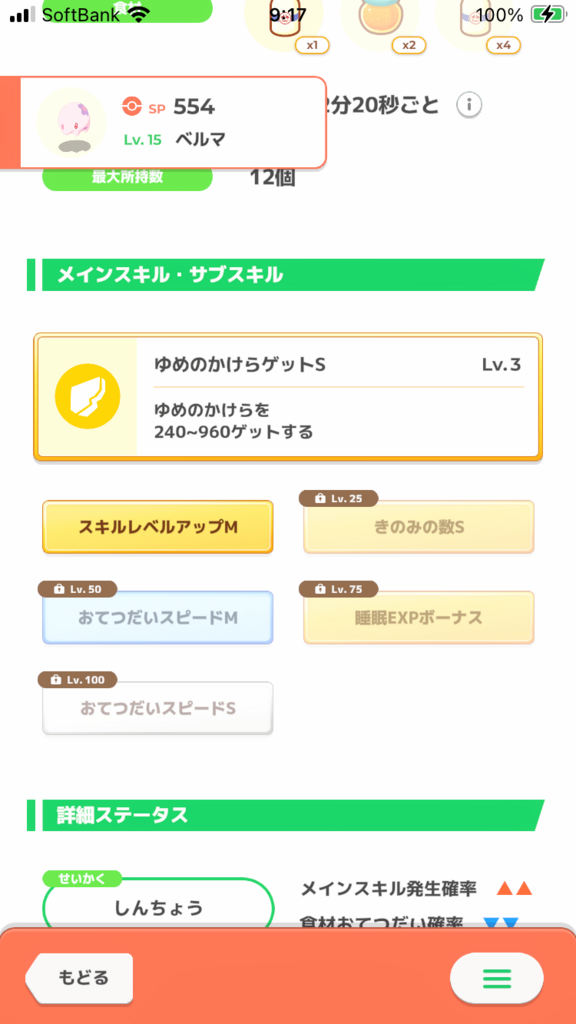 きのみスキル中心のタイプなら、食材確率アップSが控えてるのがちょっとマイナスな気はしますが、それ以外はわりといい感じでしょうか?