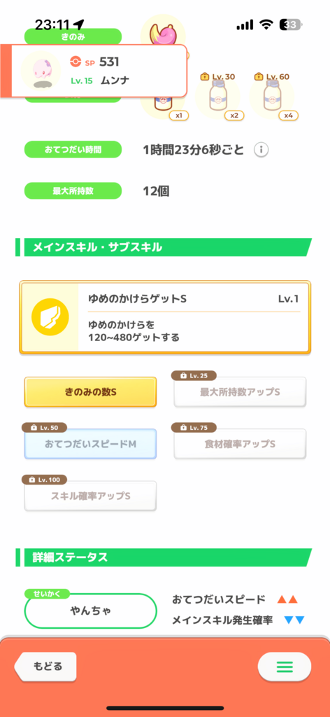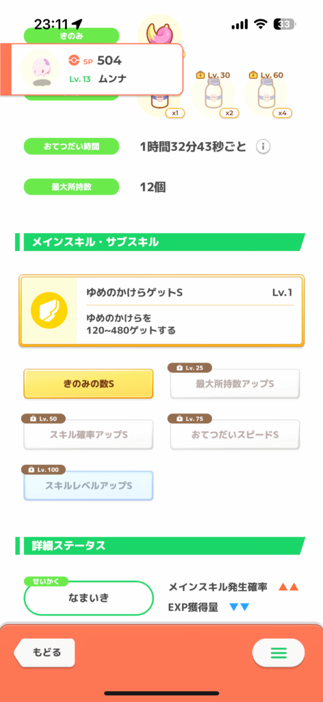 きのみタイプにしてはスキル発生確率が高いので、きのみエナジーとゆめのかけらの兼業がかなり強いのでは?