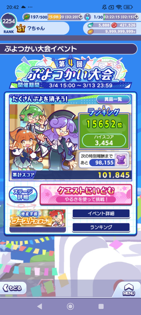 !画像1 ← ぷよつかい 名前書くの忘れてました 眠たい人です 累計の方は何故か消えてました。