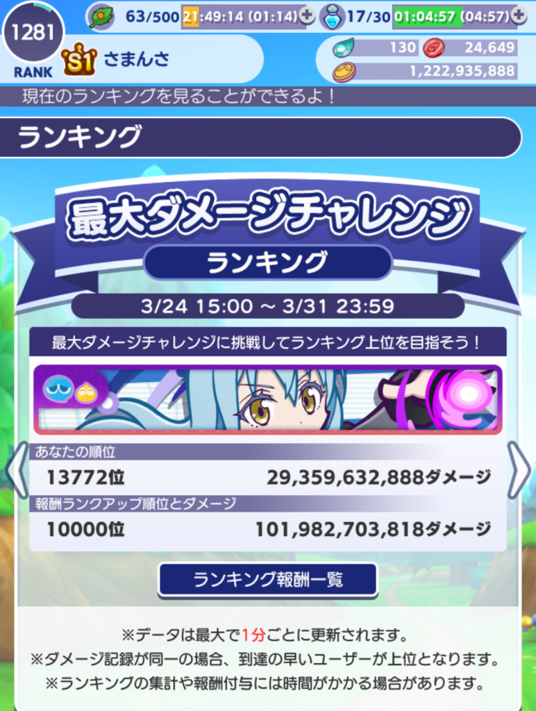 最高ダメージ 縛り部門?と通常 収穫イベントは…お察し下さい 。゚(゚´Д`゚)゚。