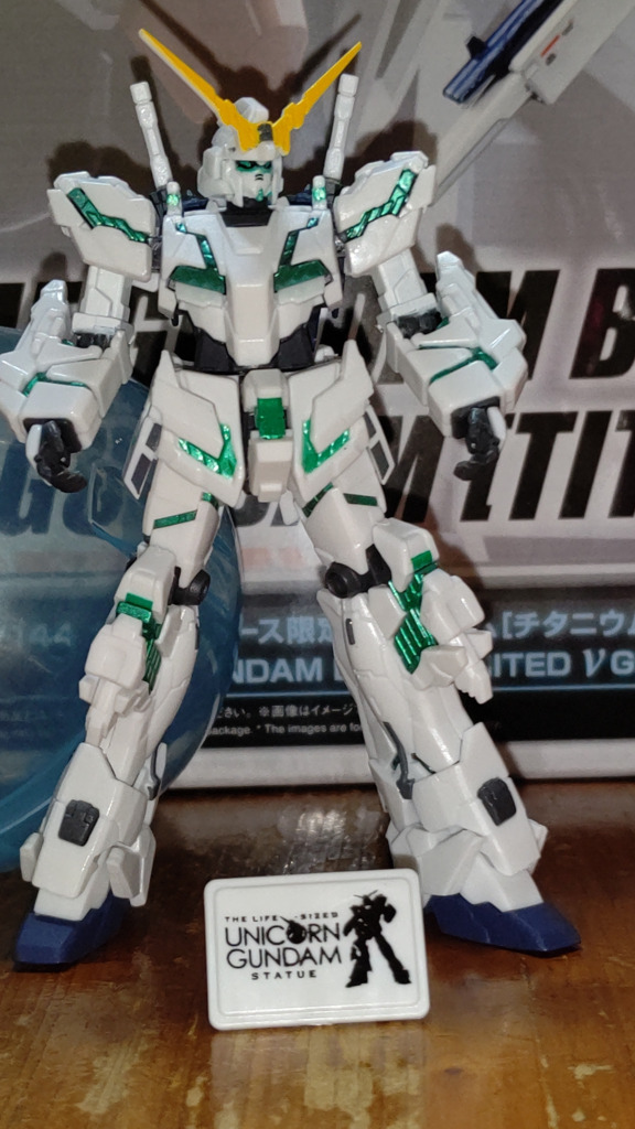 チタニウムフィニッシュ! それ塗装しなくてもかっこいいっていうことですな。 ユニコーン目がつながってると思ったらガチャポンだったのですね。 右足2本入ってるってwww お疲れ様でした。