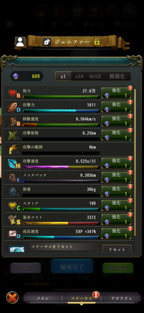 体力 移動速度 スタミナ 基本コストあたりですかね。