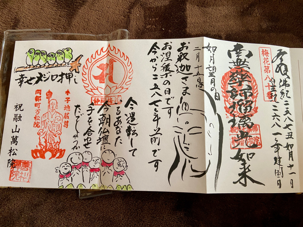 すごい凝った御朱印ですねぇ^^ 萬松院って 以前に一緒に走ったときに集合したところの近くですよね? 看板を見たような記憶があります。 お寺さん いろんなところに看板があって行ってみようかな?と思うことも多いんですが 御朱印が無いお寺の方が多いんですよね。 かく言う我が家の菩提寺にも住職にお聞きしましたら御朱印はありませんでした。