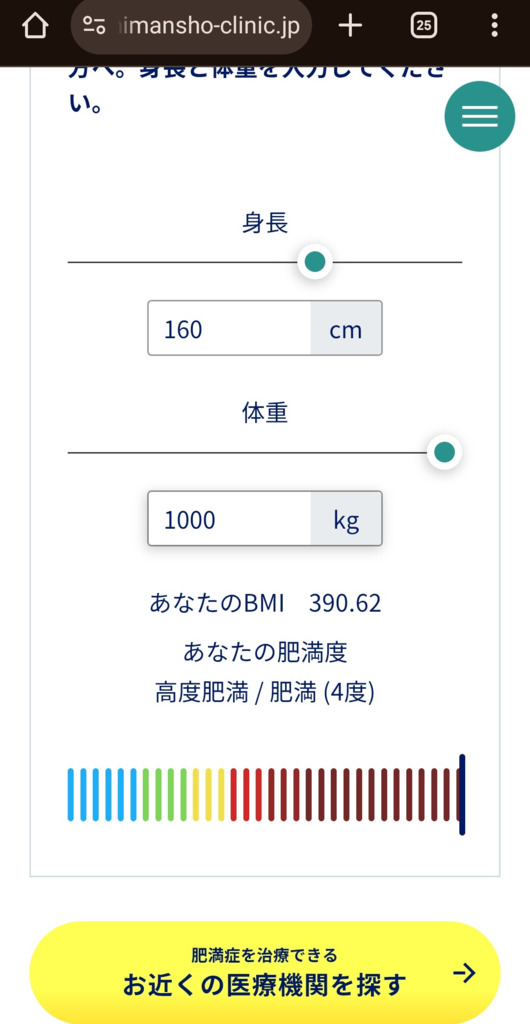 体重1トンになったらBMIは390らしい