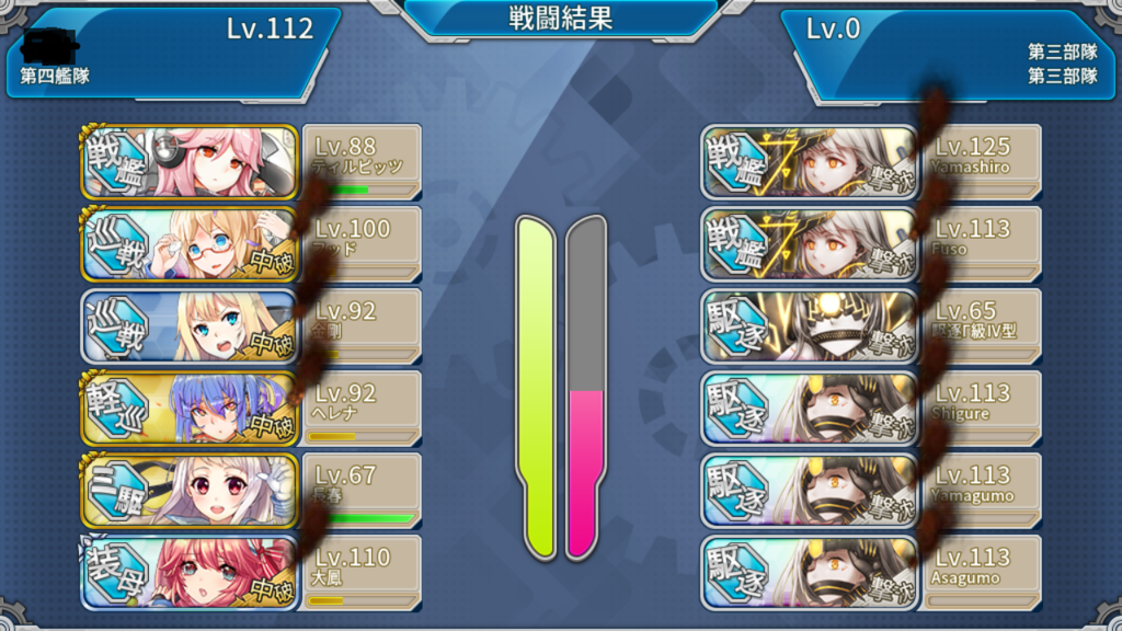 ぬわあああんE8攻略つかれたもおおおおおおん!!ちょっとくらい(レベルと艦が)足りへんでも、ままええか