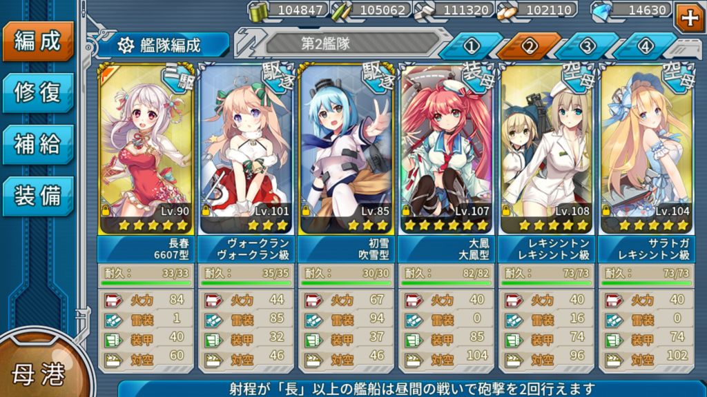 ⬆4章のクエストこの艦隊で遂行してるが夜戦する必要も無いよ。